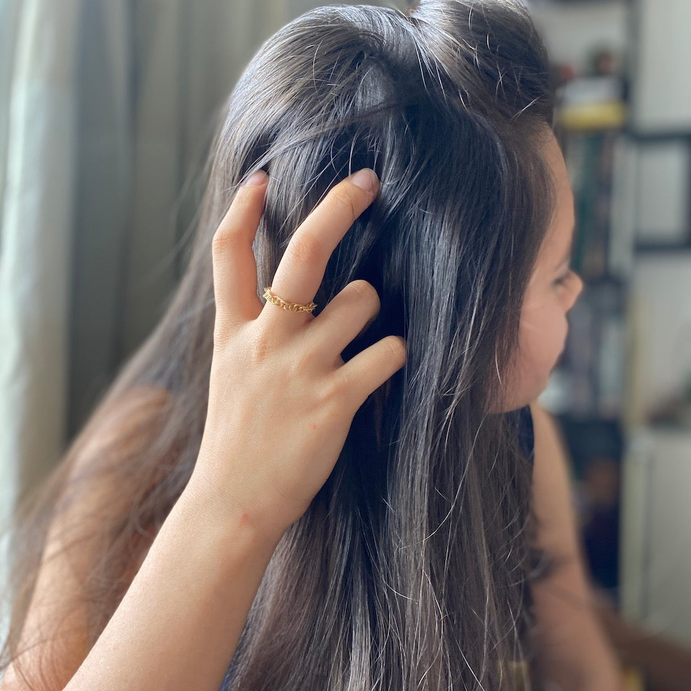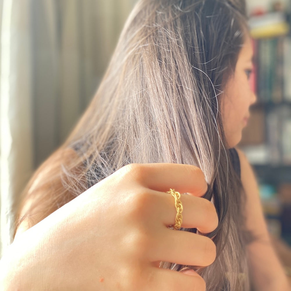 The vintage-inspired textured elements, which intertwine around the wrist, take on a modern twist thanks to the delicacy and purity of the bracelet.