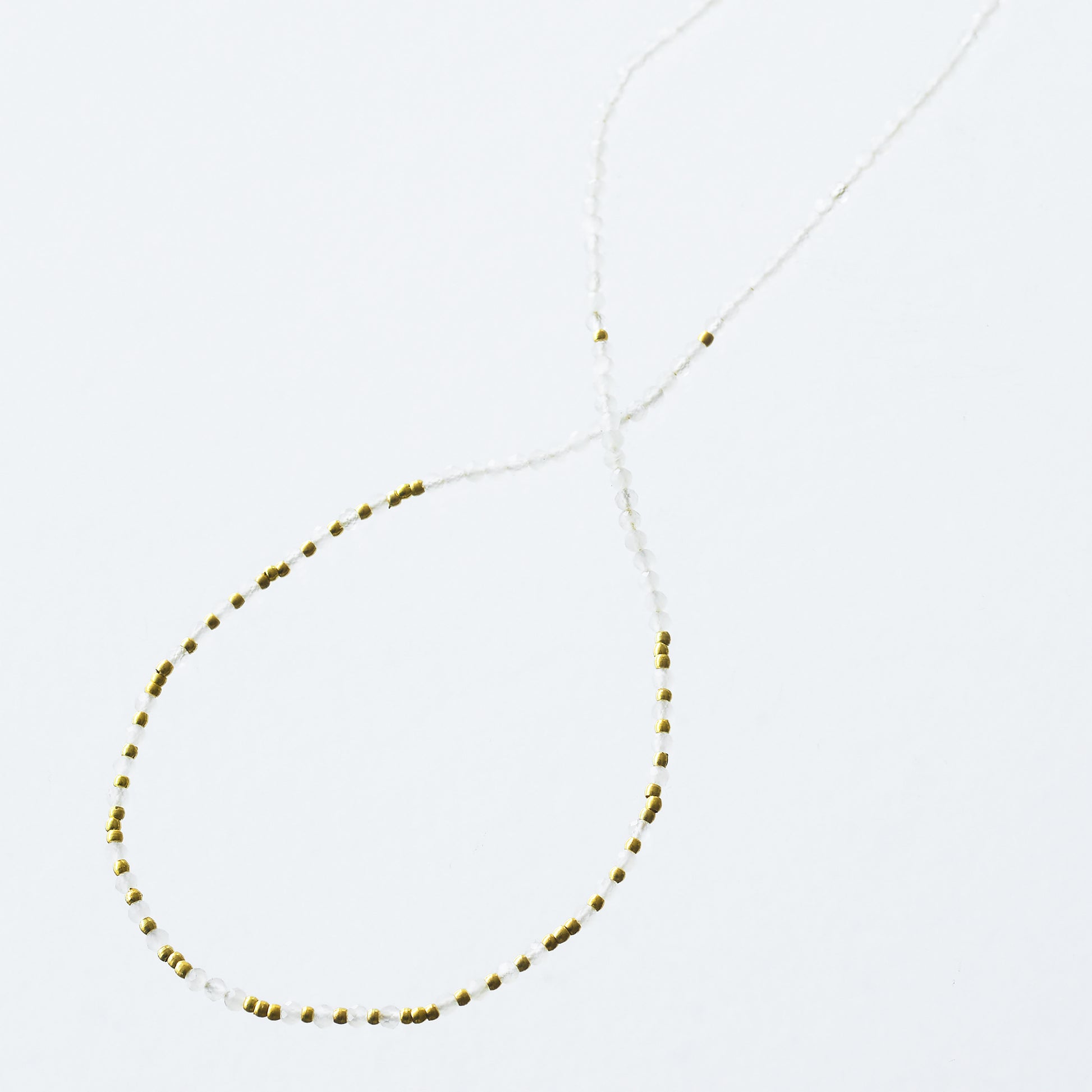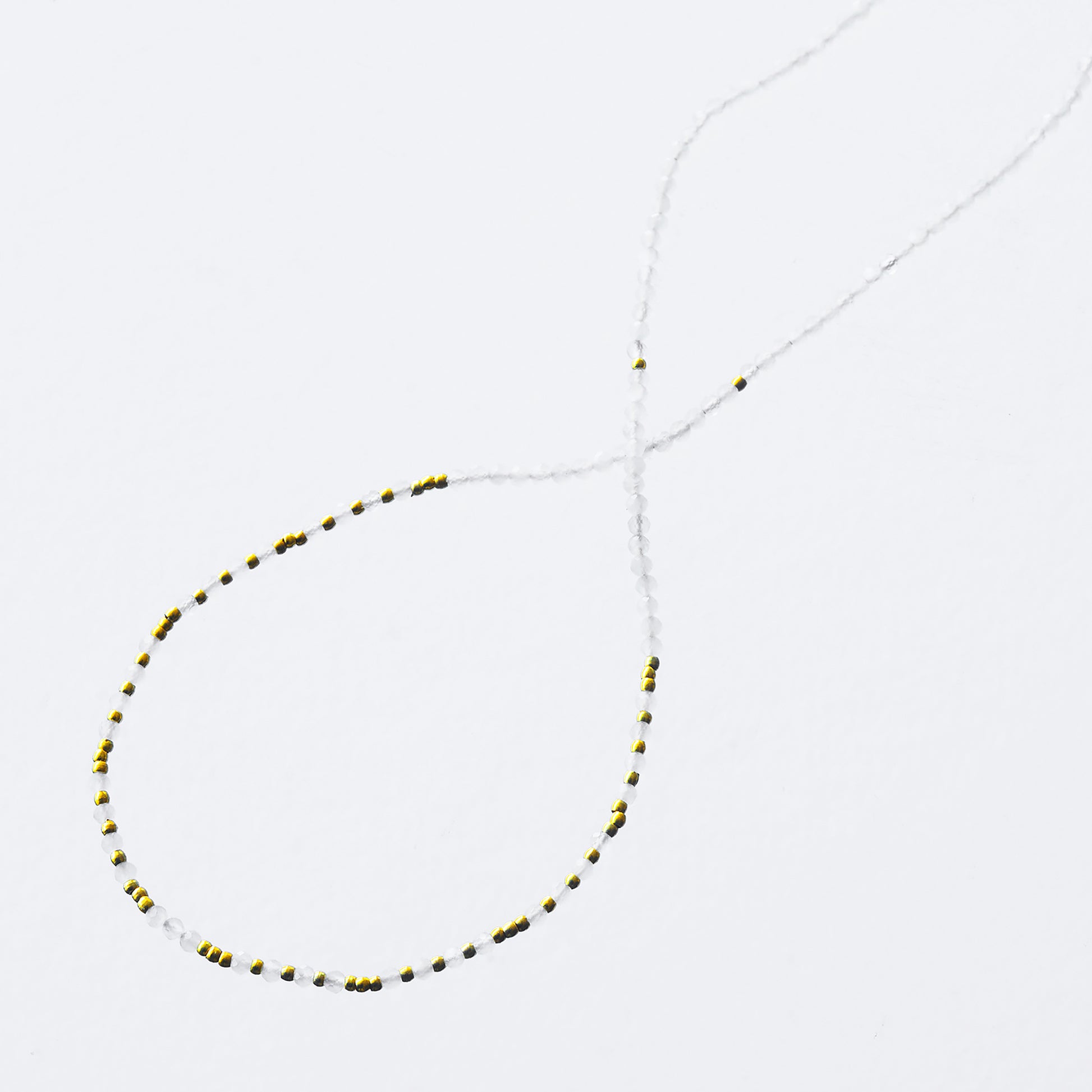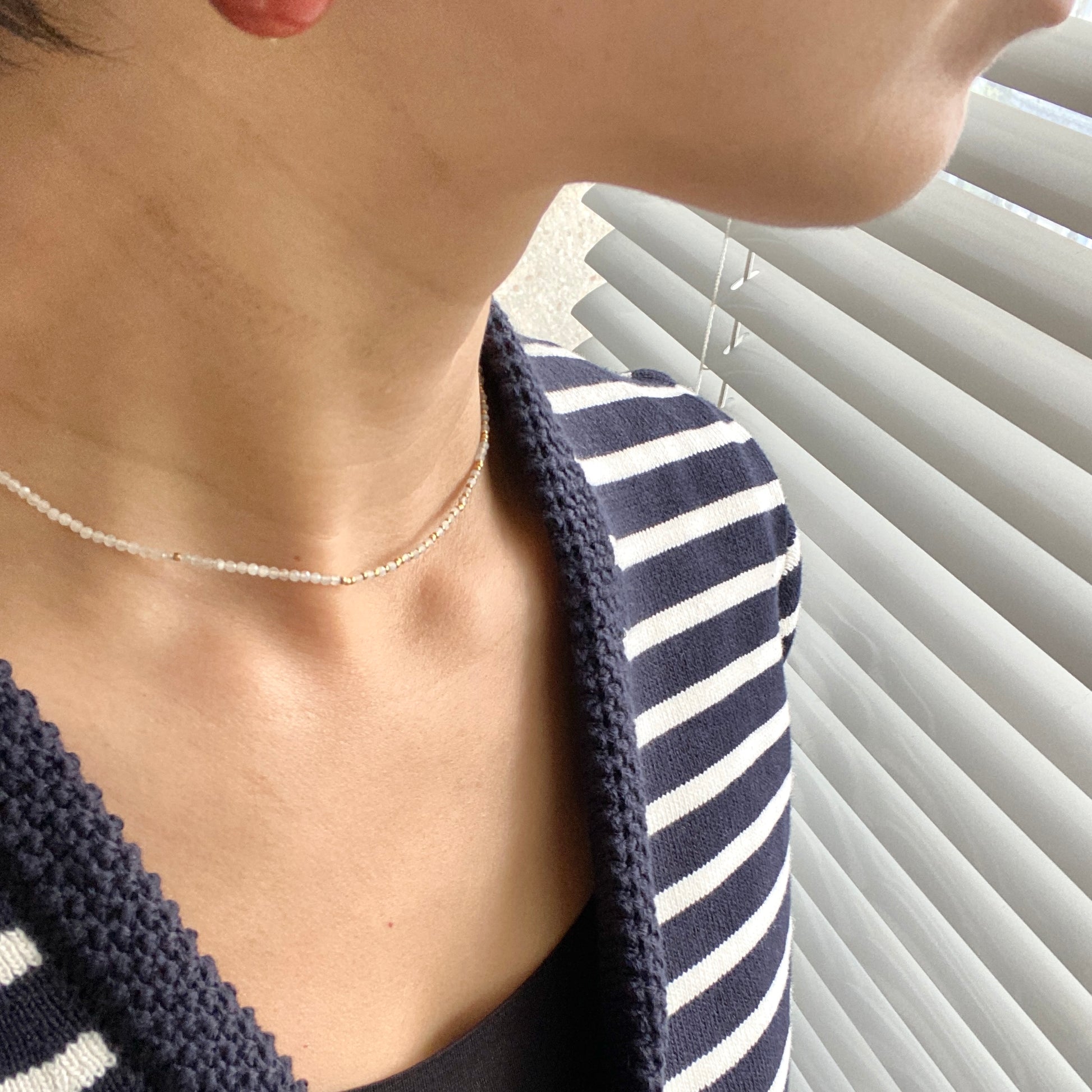 White moon stone necklace and mini golden pearls, clasp and 4 cm of gold plated adjustment chain.
