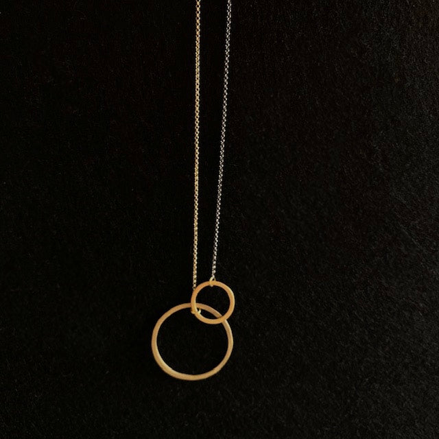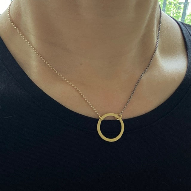 One of our best-sellers, this versatile gold-plated silver + ruthenium necklace can be worn in a variety of ways. You can remove the large circle and wear it as a bracelet.