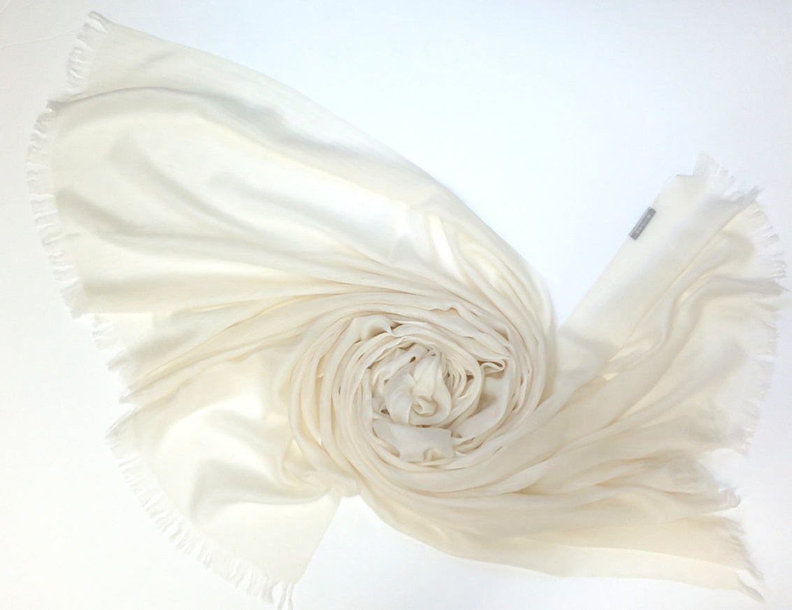 カシミア50%/シルク50%のストールは、身に着けたときの鮮やかな発色と落ち感が美しいのが特徴です。